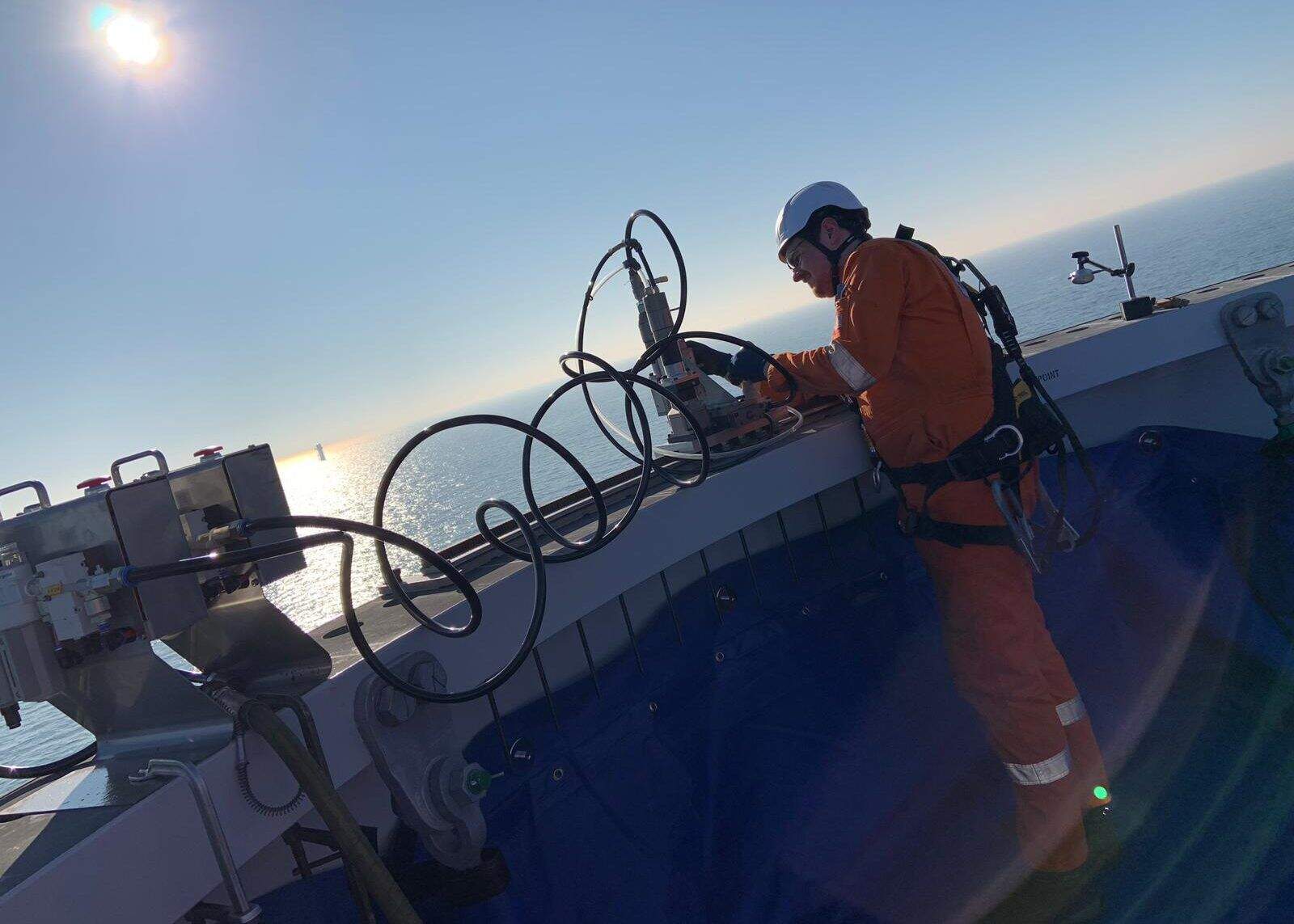 Removal of samples for testing off welded joints between wind turbine tower sections needed to be carried out on wind turbine towers from the Greater Gabbard Wind Farm.